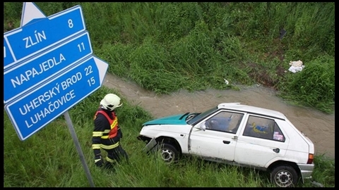 V16:50 hod. byli hasiči požádáni o pomoc po velmi vážné havárii auta do potoka v obci Bohuslavice u Zlína.