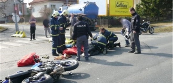 a fekálního vozu. Zraněný motorkář ležel na silnici a stěžoval si na bolestv oblasti břicha a pánve.