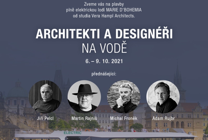 Na plavbě elektrickou lodí navržené ateliérem Vera Hampl Architects budou mezi hosty architekti Martin Rajniš a Adam Rujbr nebo Michal Froněk z designérského dua Olgoj Chorchoj. Plavbu ve středu 6. října zahájí profesor Jiří Pelcl.
