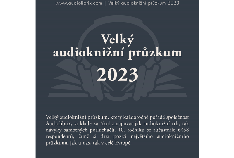 Velký audioknižní průzkum, který každoročně pořádá společnost Audiolibrix, si klade za úkol zmapovat jak audioknižní trh, tak návyky samotných posluchačů. 10. ročníku se zúčastnilo 6458 respondentů, čímž si drží pozici největšího audioknižního průzkumu jak u nás, tak v celé Evropě.