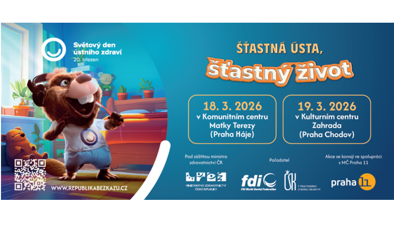 Praha 17. března 2026 (PROTEXT) - Česká stomatologická komora (ČSK) připravila u příležitosti Světového dne ústního zdraví 2026 rozsáhlý program edukačních a osvětových akcí pro děti i širokou veřejnost. Aktivity se uskuteční na téměř 90 místech po celé České republice a zapojí se do nich stomatologové, dentální hygienistky i studenti stomatologie.
