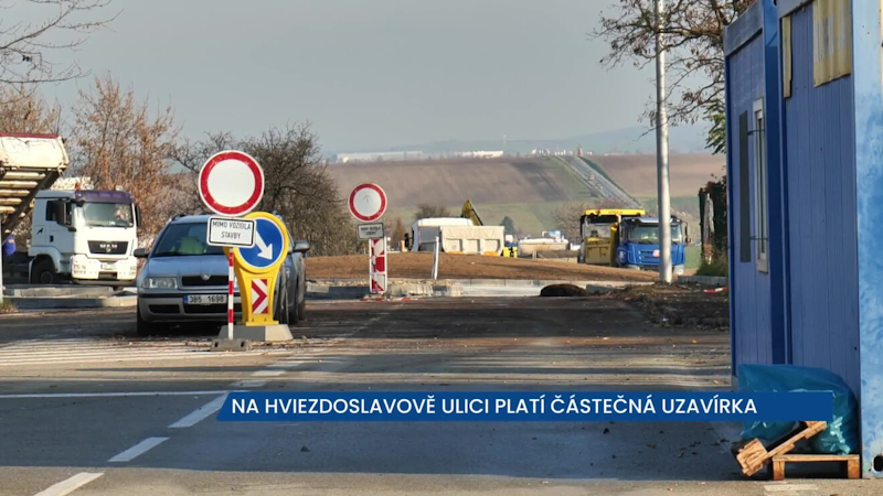 Konec dopravního omezení na Hviezdoslavově ulici je naplánován do konce soboty 14. prosince. To by měl být otevřen i nový kruhový objezd.