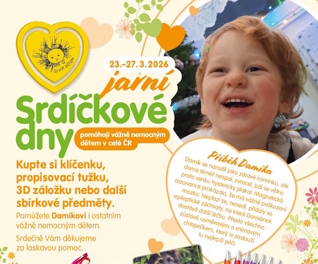 Praha 18. března 2026 (PROTEXT) - Od 23.3. do 27.3.2026 se koná tradiční veřejná sbírka jarní Srdíčkové dny, kterou pořádá obecně prospěšná společnost Život dětem již 26 let. Sbírka se koná na pomoc rodinám s vážně nemocnými dětmi po celé České republice.