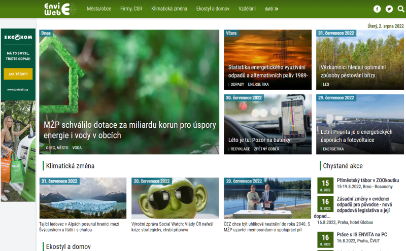 Praha 2. srpna 2022 (PROTEXT) - Oblíbený český portál specializující se na témata spojená s životním prostředím a ekologií mění svůj design a reaguje na poptávku nových témat.