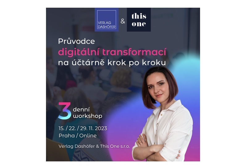 Nakladatelství Verlag Dashöfer vás společně s účetně-poradenskou firmou This One, s.r.o. provede digitální transformací na účtárně. Ve dnech 15., 22. a 29. listopadu 2023 se pustíte do automatizace účetní agendy. S každým workshopovým dnem překročíte další milník na cestě k efektivitě, a to všechno pod vedením těch, kteří mají digitalizaci v malíčku. Nejen pochopíte, ale opravdu si vyzkoušíte, jak vybrat nejlepší nástroje pro vaši firmu.