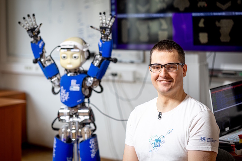 Aby se roboti mohli rozšířit mimo oplocené zóny do pracovních a obytných prostor sdílených s lidmi, musejí se naučit fungovat v dynamickém a nepředvídatelném prostředí. Avšak jejich plošnému rozšíření navzdory velkým očekáváním stále brání problémy s bezpečností. Oceněná disertační práce Jakuba Rozlivka Vnímání a bezpečnost při interakci člověka s robotem v těsné blízkosti se zaměřuje na tyto výzvy, konkrétně na zlepšení bezpečnosti a efektivity interakce člověka s robotem v těsné blízkosti. Práce zkoumá, jak roboti mohou lépe „vidět“ své okolí pomocí kamer a dalších senzorů a jak mohou tyto informace využít k řízení pohybu. Ukazuje také, jak velký vliv mají měkké ochranné prvky na snížení síly nárazu při kontaktu s člověkem. Nejvýznamnější částí je pak návrh řídicího systému, který umožňuje robotu rychle reagovat, vyhýbat se lidem a pohybovat se podobně jako člověk.