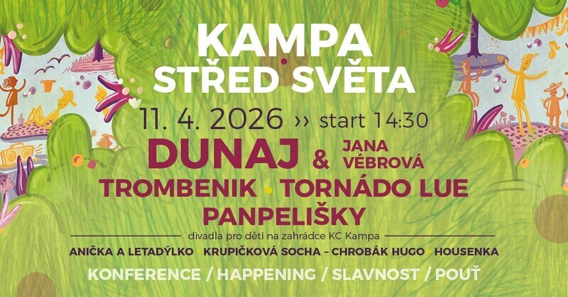 Praha 2. dubna 2026 (PROTEXT) - Kampa Střed Světa, 18. ročník, Sobota 11. 4. 2026 - od 14:00 v parku Kampa