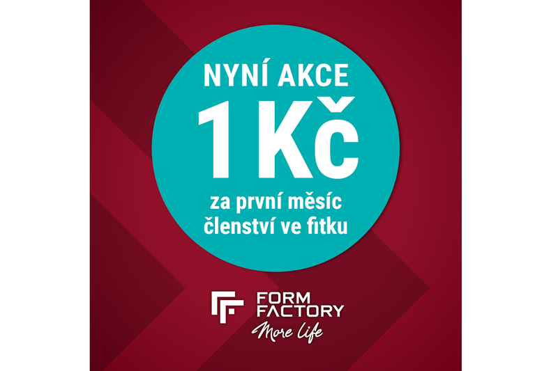 Začněte naplno a bez obav – Form Factory nabízí od 1. 1. do 31. 3. 2026 první měsíc členství za 1 Kč v celé síti klubů Form Factory i The Gym. Akce platí také pro program Pro Age určený studentům a seniorům. Na konkrétní podmínky se můžete informovat přímo ve svém oblíbeném klubu.
