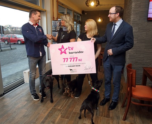 Generální ředitel TV Barrandov Jaromír Soukup v březnu 2018 předal dobročinnému sdružení částku 77 777 korun. "Snad vám samé sedmičky přinesou jen štěstí," popřál. Dočasky DeDe podle svých slov peníze do posledního haléře využily na "veterinu", krmiva, pelíšky či obojky a vodítka.