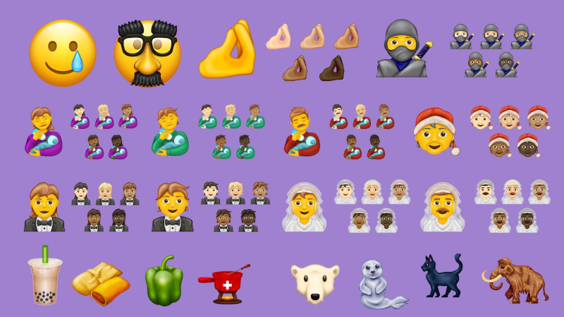 Mezi novými emodži, jejichž kompletní list zveřejnila organizace na svých stránkách, jsou dále třeba zvířata včetně vyhynulého mamuta, populární drinky bubble tea nebo lidské srdce a plíce. Speciálně potěšeni pak budou Italové, kteří se dočkali gesta sevřených prstů a palce, což znamená vyjádření neuvěření nebo zmatení ve smyslu "Co to sakra plácáš?".