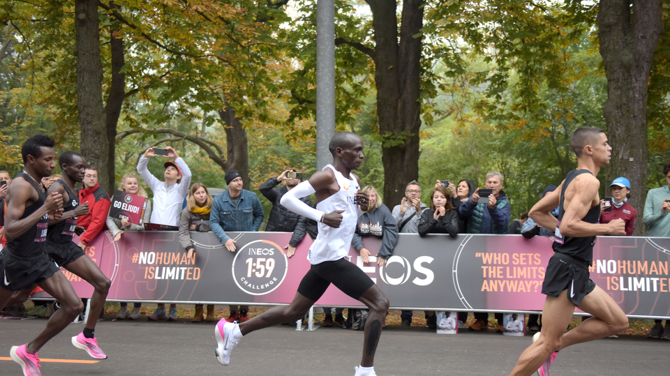 Vytrvalce nezpomalily ani dešťové kapky, s nimiž předpověď nepočítala. Jedenadvacet kilometrů zvládli za 59:35, což znamenalo jedenáct sekund k dobru, a dál se pečlivě drželi zelené laserové čáry před sebou. Zatímco předloni v Monze Kipchoge na posledních kilometrech zvolnil, tentokrát před hlasitě povzbuzujícími fanoušky tempo udržel.
