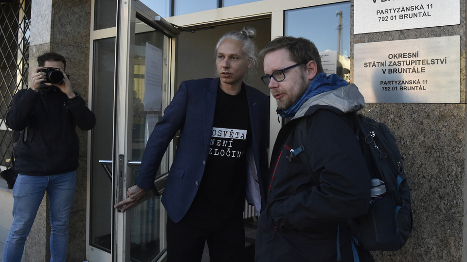 "Nepsal jsem texty, které by nabádaly k páchání trestné činnosti. Stejně tak jsem nedistribuoval nic, co by mohlo být jako protiprávní zboží, všechno je to volně dostupné," řekl Veverka. K jednání dorazil v saku a tričku s nápisem "Osvěta není zločin".