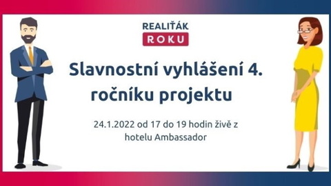 Slavnostní vyhlášení výsledků 4. ročníku projektu Realiťák roku 2021 proběhne v hotelu Ambassador v Praze v pondělí 24. ledna 2022 od 17:00 do 19:00. Na tento večer jsou pozváni pouze vybraní hosté...