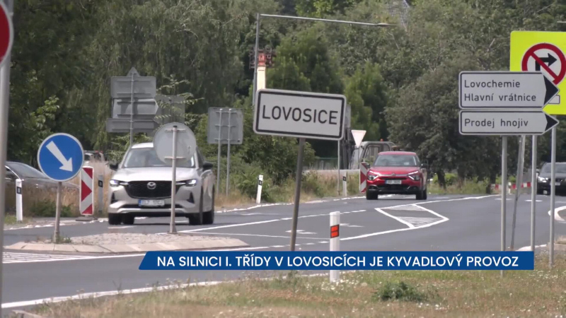 Lovosice 8. srpna 2025 (PROTEXT) - V Lovosicích, v ulici Terezínská, probíhá již od jara oprava vodovodního řadu na silnici I. třídy. Provoz je zde sveden do jednoho jízdního pruhu a dopravu řídí semafory.