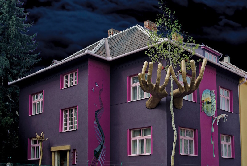 Praha 9. května 2025 (PROTEXT) - V sobotu 17. května ve 21 hodin pořádá sochař, malíř a performer Lubo Kristek před svým domem v Brně happeningový dotek s odhalením obrazu „Hnancem v soukolí aneb Náhodná asociace k sv. Šebestiánovi“.