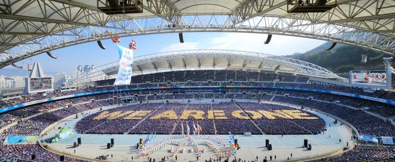 Promoce byla vysílána živě na Youtube ze sportovního stadionu v Jižní Koreji s překladem do devíti jazyků. Věřící z celého světa se tak mohli navzájem propojit a společně vzdát slávu Bohu.