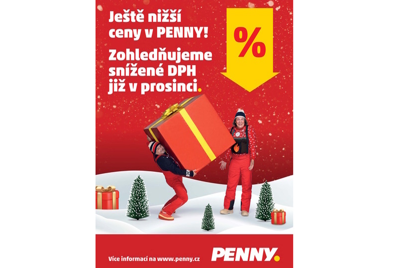 Od počátku roku 2024 budou na základě rozhodnutí vlády ČR platit pouze dvě sazby DPH, a to 12 % a 21 %. Potraviny budou zatíženy sazbou 12 %, oproti stávajícím 15 %. „Rozhodli jsme se našim zákazníkům toto snížení cen přinést jako vánoční dárek už před svátky a tyto snížené ceny jim nabídneme už po celý prosinec. Lidé nemusí mít obavy, že bychom tuto cenu nějak okamžitě zaokrouhlovali. Jsme a budeme transparentní a počítáme ceny na haléře. Sleva na produkty, kterých se snížení DPH týká, bude zákazníkovi vždy započtena až u pokladny,“ popisuje Vít Vojtěch, vedoucí strategického marketingu PENNY a dodává: „Slevu dostanou všichni držitelé všech typů PENNY karet, kteří předloží speciální kupón. Ten najdou v našich letácích, na našich sociálních sítích, na našem webu nebo v samotné aplikaci PENNY. Na všechny nákupy v průběhu prosince pak dostane tento zákazník slevu, když bude mít jeden kupón, který může používat opakovaně po celý měsíc na všechny nákupy.“