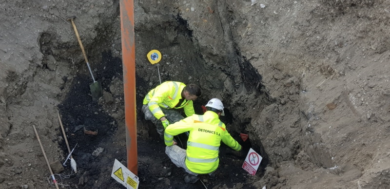 "Jednalo se o nález dvou kusů minometného dělostřeleckého granátu. Mimo moderní povrchové detekce na zajištění přítomnosti nevybuchlé munice především v silně kontaminovaném terénu s kovovým odpadem používáme revoluční řešení pomocí speciálních sond. Tato neinvazivní technologie dokáže odhalit přítomnost nevybuchlé munice v mnohonásobně větších hloubkách i menších kalibrech než při jakýchkoliv jiných metodách," vysvětluje Jan Fehér ze společnosti Detonics.