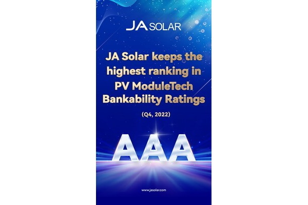Peking (Čína) 4. ledna 2023 (PROTEXT/PRNewswire) - Společnost JA Solar si udržela nejvyšší hodnocení AAA v nedávno zveřejněné zprávě PV Tech o žebříčku finanční životaschopnosti PV ModuleTech za 4. čtvrtletí roku 2022, a to na základě svých výsledků v ukazatelích zahrnujících dodávky a výrobní kapacitu v kombinaci s technickým a finančním stavem.