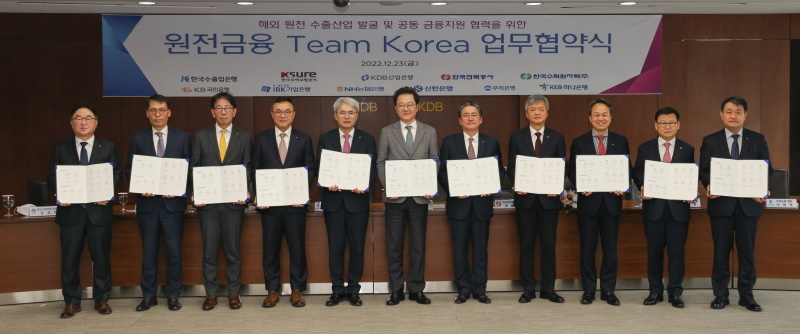 Společnosti Korea Hydro & Nuclear Power (KHNP) a Korea Electric Power Corporation (KEPCO) podepsaly 23. prosince s korejskými vládními finančními institucemi a komerčními bankami memorandum o porozumění v oblasti financování jaderných elektráren. Mezi signatáři jsou Korejská rozvojová banka (KDB), Korejská exportní a importní banka (KEXIM) a K-Sure (Korea Trade Insurance Corporation). Cílem memoranda je posílit spolupráci při financování zahraničních projektů v odvětví jaderné energetiky.