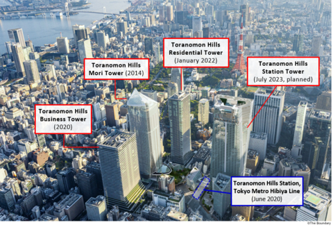 Otevřením Toranomon Hills Station Tower na podzim 2023 bude Toranomon Hills rozšířeno na 7,5 ha a celkovou podlahovou plochu 800.000 m2. Oblast se neustále vyvíjí jako komplex smíšeného využití integrovaný s městskými infrastrukturami, jako je ulice a metro, s podobným dopadem, jako má epochální projekt Roppongi Hills postavený rovněž společností Mori Building.