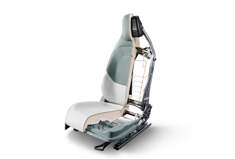 Sedadlový poťah z PET-PU je vyrobený zo 100 % recyklovaných fliaš z nealkoholických nápojov, vďaka čomu sa znižujú emisie uhlíka o viac ako 20 %. Aj pena použitá na sedadlo a operadlo Reco Seat je šetrná k životnému prostrediu. Kombináciou recyklovanej a termoplastickej peny sa dosahuje pohodlnejšie sedenie a lepšia opora v porovnaní s bežnou polyuretánovou penou. Okrem toho sa pri výrobe a procese tvarovania peny používa priemyselná odpadová vodná para, ktorá výrazne znižuje spotrebu energie a emisie.
