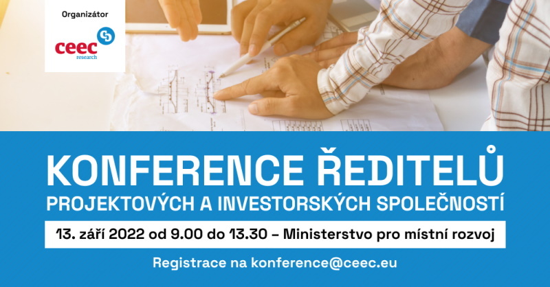 Ve spolupráci s ministerstvem pro místní rozvoj připravila společnost CEEC Research pravidelný ročník největší celonárodní Konference ředitelů projektových a investorských společností 2022. Dne 13. září od 9.00 do 13:30 budou lídři v oblasti projektové přípravy a největší privátní i veřejní investoři v ČR diskutovat přímo na ministerstvu pro místní rozvoj.