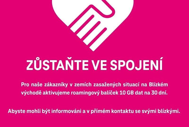 Praha 1. března 2026 (PROTEXT) - T-Mobile okamžitě reaguje na aktuální situaci a všem svým zákazníkům pobývajícím v destinacích Blízkého východu a zasaženým aktuálním konfliktem poskytne data pro spojení s blízkými na 30 dní zdarma. V lokalitách má operátor v době vydání této informace zhruba 3800 zákazníků.