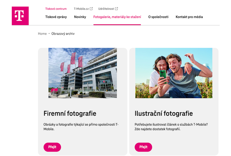 Portál nadále nabízí rozsáhlý archiv tiskových zpráv a novinek sahající až do roku 1997. Návštěvníci zde najdou například aktualizovanou fotogalerii s portréty vedení a dalších klíčových osobností T‑Mobilu, výběr ocenění, zásadní technologické milníky, ilustrační fotografie i snímky klíčových budov společnosti – například hlavní centrálu na Roztylech nebo datové centrum DC7.