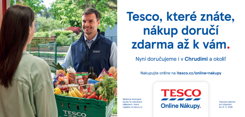 Chrudim 24. března 2026 (PROTEXT) - Společnost Tesco pokračuje v rozšiřování své oblíbené služby Tesco Online Nákupy. Od 24. března bude služba dostupná také zákazníkům v Chrudimi a okolí. V předvelikonočním období tak obyvatelé tohoto regionu získají možnost pohodlně nakupovat z domova, bez stresu a front, a to za stejné ceny jako v hypermarketech. Zákazníci mohou využít dopravu zdarma nad 1500 Kč a řadu dalších výhod. Služba je díky rozšíření dostupná pro 80 % domácností.