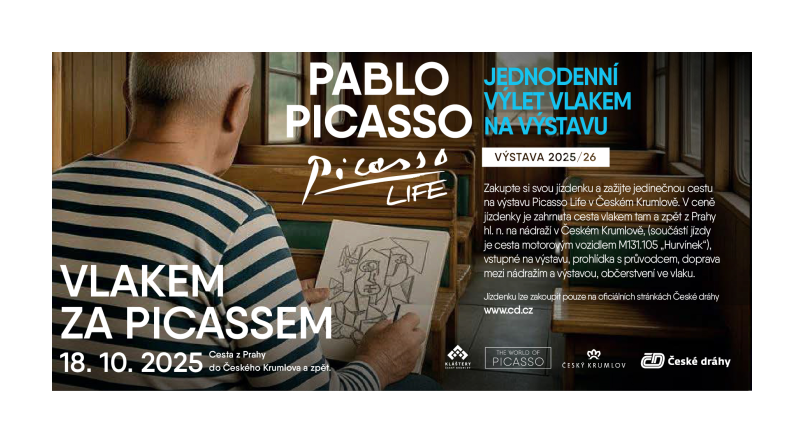 Praha 7. října 2025 (PROTEXT) - Ve spolupráci s The World of Picasso a České Dráhy je nabízen jednodenní výlet vlakem z Prahy do Českého Krumlova a zpět s návštěvou výstavy Picasso Life. Vše je pro cestující promyšlené do posledního detailu, aby si mohli užít den plný umění a zážitků bez zbytečných starostí.