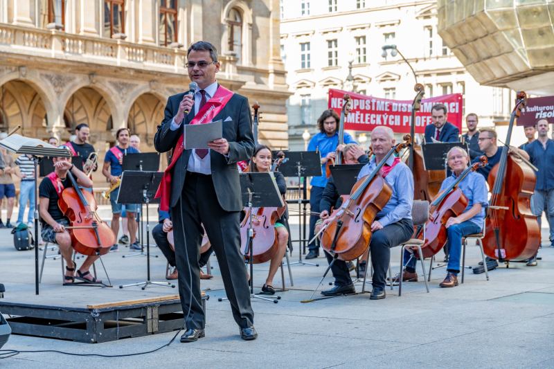 Hraju forte za českou kulturu!, zní z celé země. Ministr Martin Baxa je ochoten diskutovat, ke konkrétním tématům se osobně zatím nevyjádřil. Orchestrální hudebníci a sboristé vystoupí v Praze.