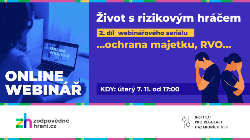 V úterý 7. listopadu 2023 pořádá projekt Zodpovědné hraní 2.díl webinářového seriálu v rámci Týdne zodpovědného hraní, tentokrát se zaměřěním na ochranu majetku, dluhy a RVO